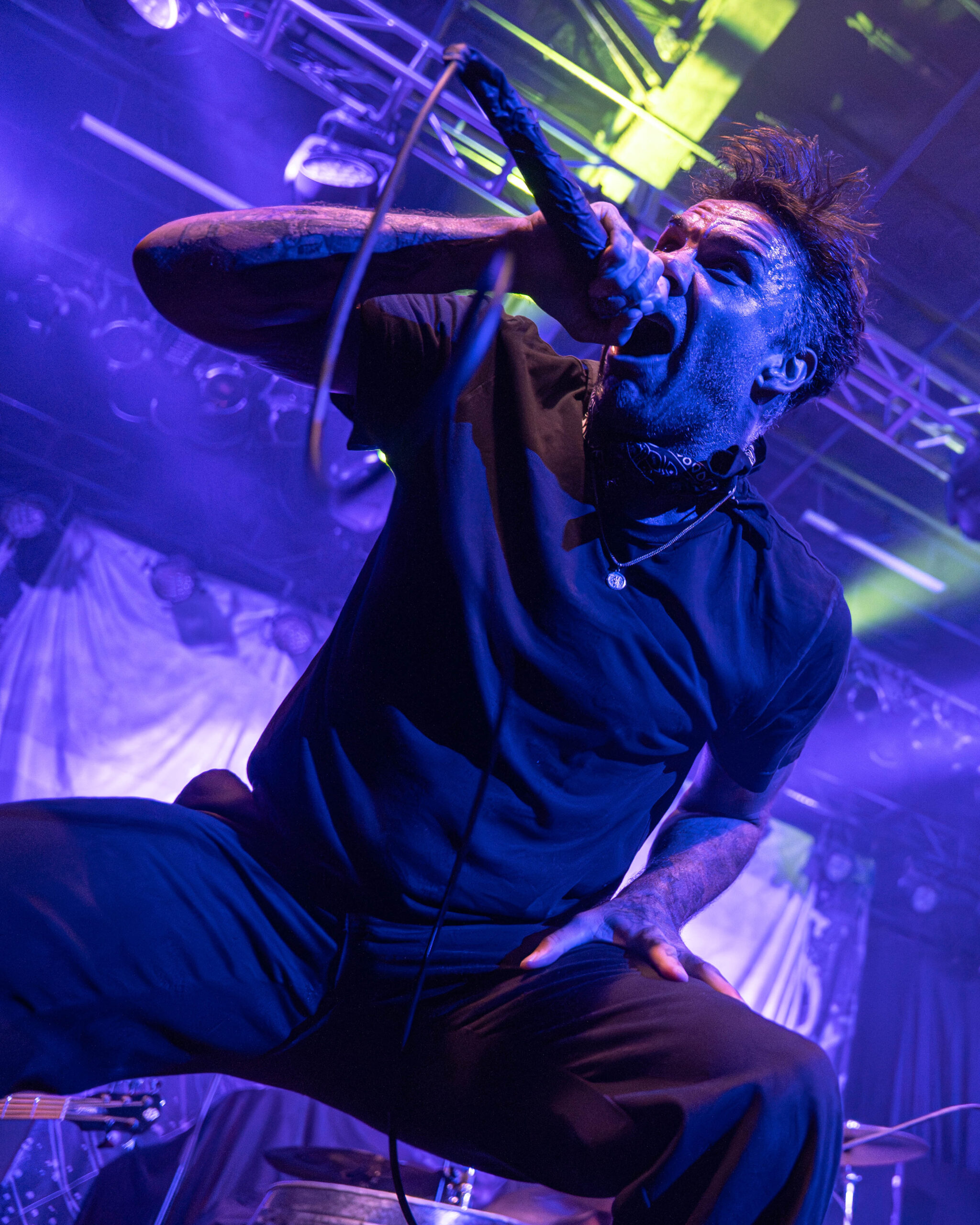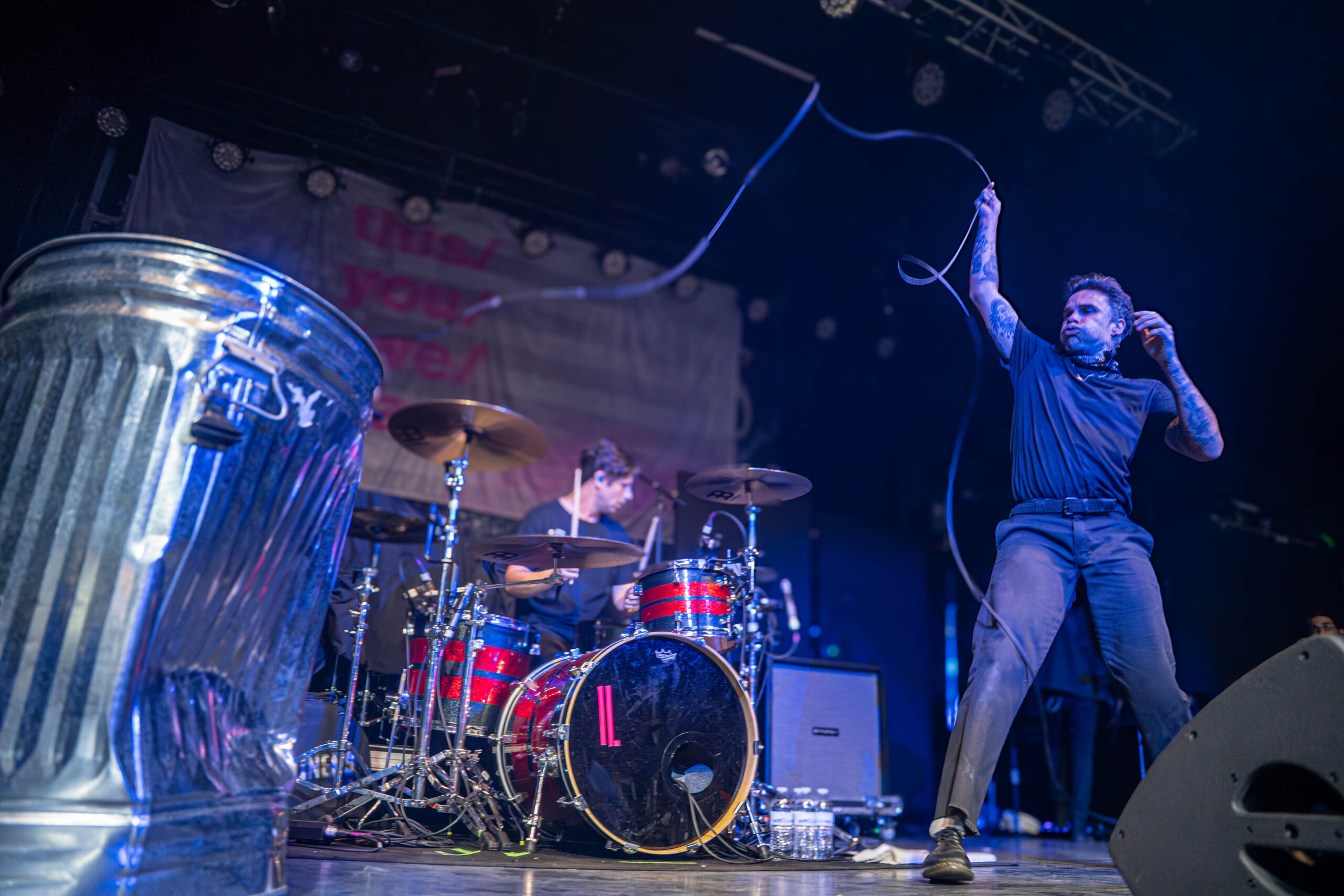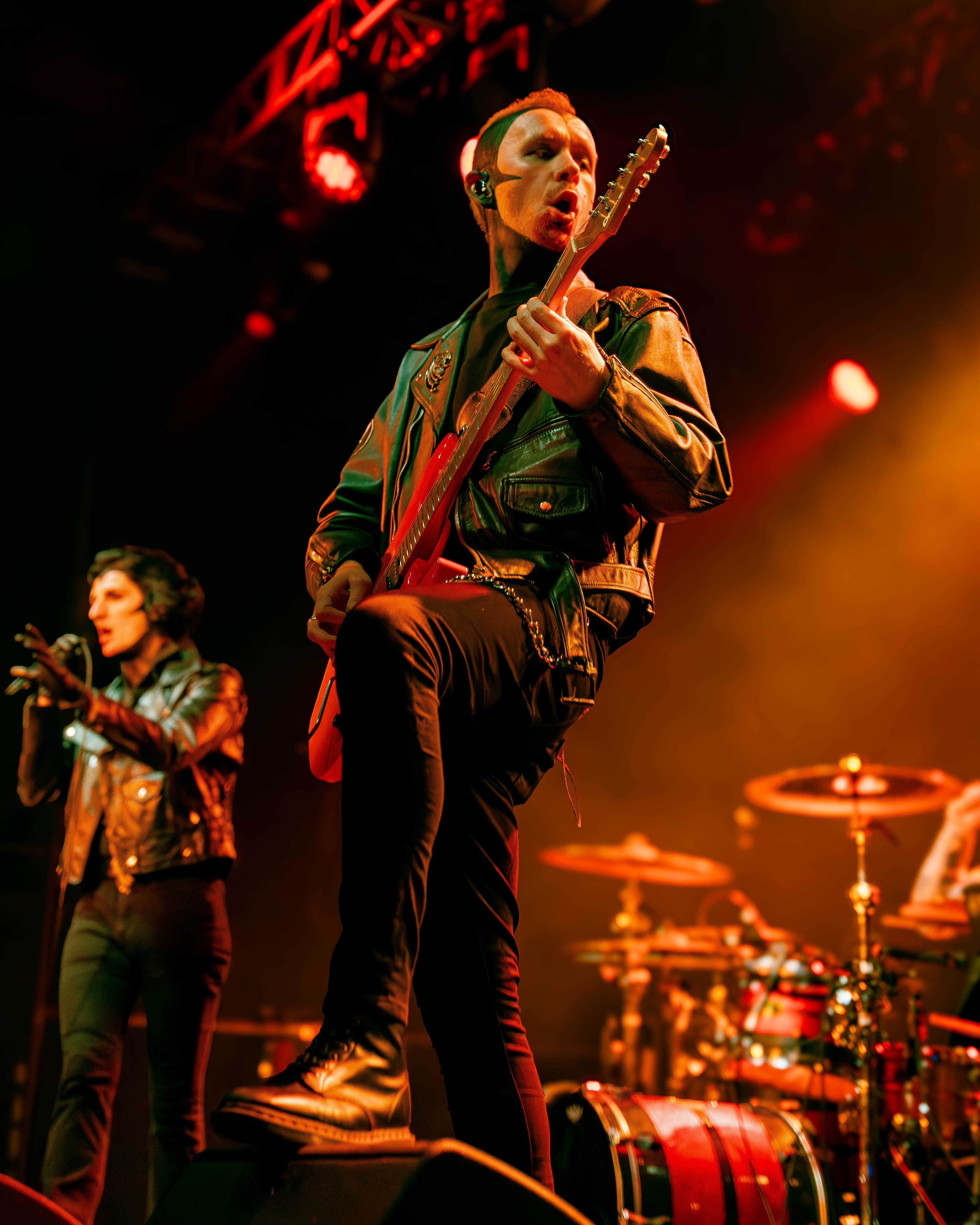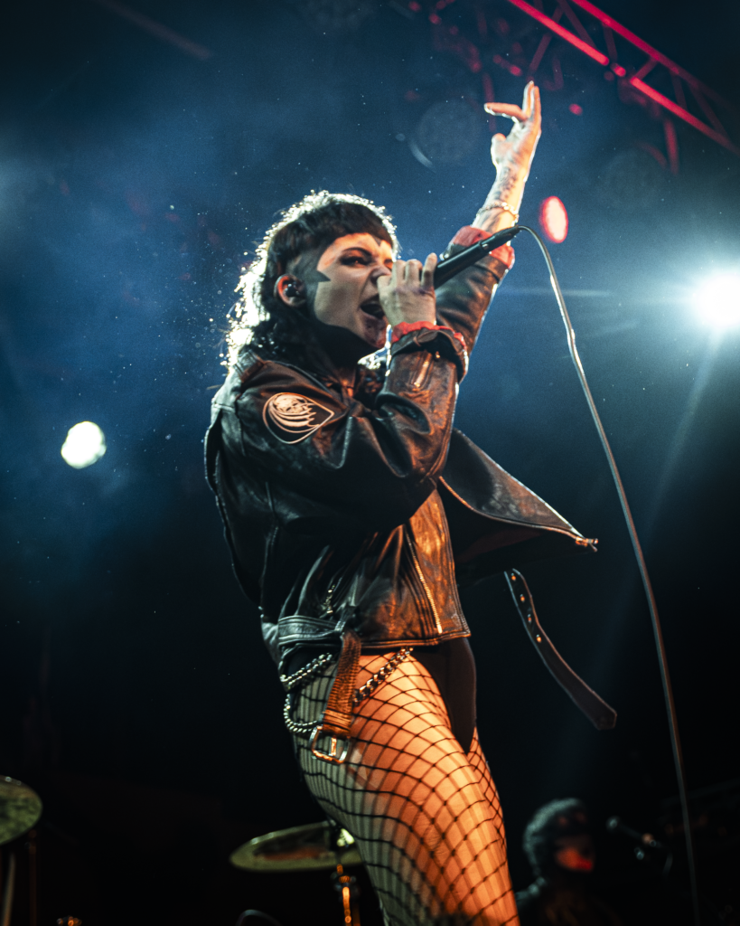 The evening began with a pair of openers who set the tone in very different ways. Creeper opened the night with a theatrical presence that blended gothic imagery and soaring melodies. Their set carried an almost cinematic quality, leaning into dramatic crescendos and charismatic stage energy that quickly won over early arrivals. Later, letlive. delivered a stark contrast—an explosive, high-intensity performance that injected raw urgency into the room. Frontman Jason Aalon Butler commanded the stage with relentless motion, pushing the energy level higher and leaving the crowd primed for the night’s headliner. At the beginning, Butler started running around the stage with a rubbish bin over himself, and at the end, he glided from the stage and brought himself to the very back of the venue, up the stairs and screaming over the terrace to onlooking fans from below.