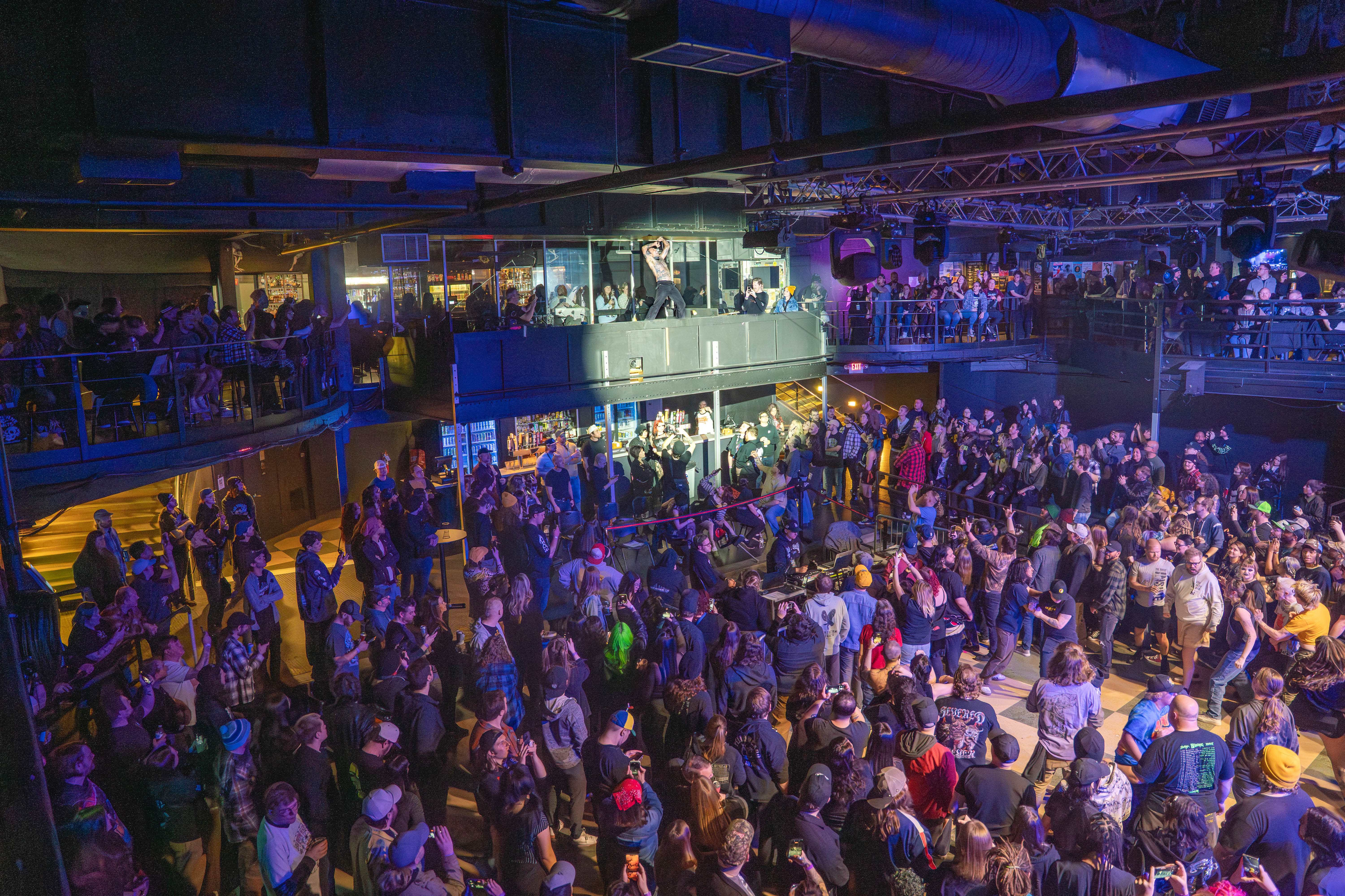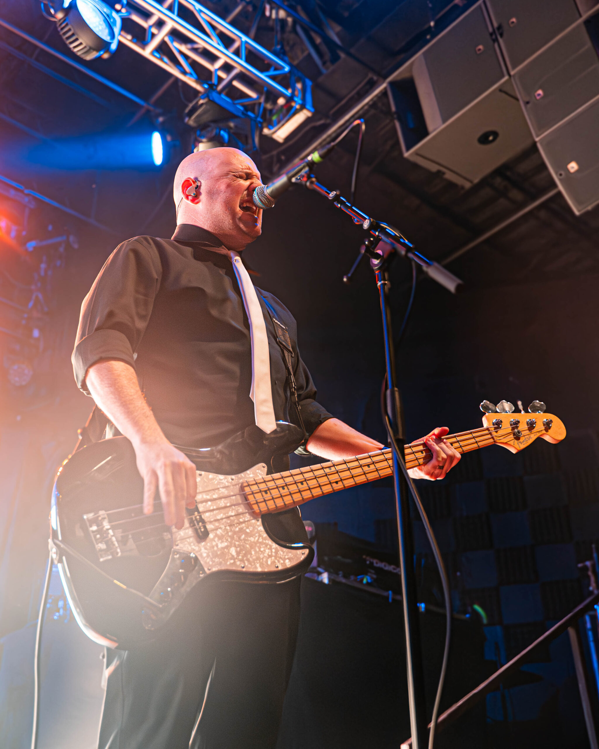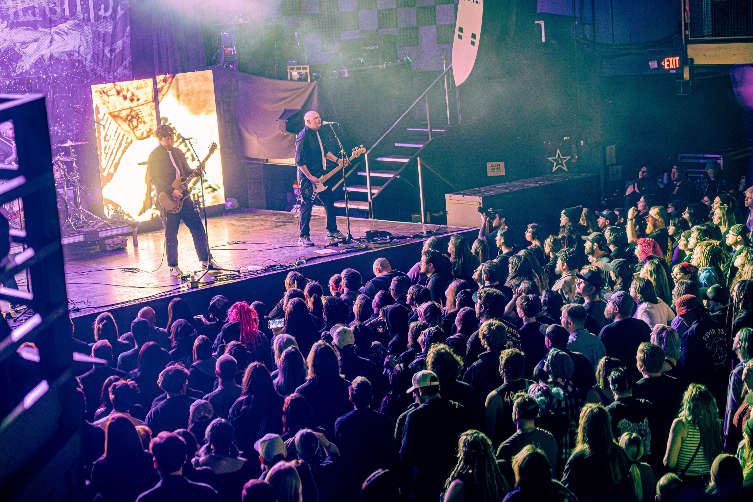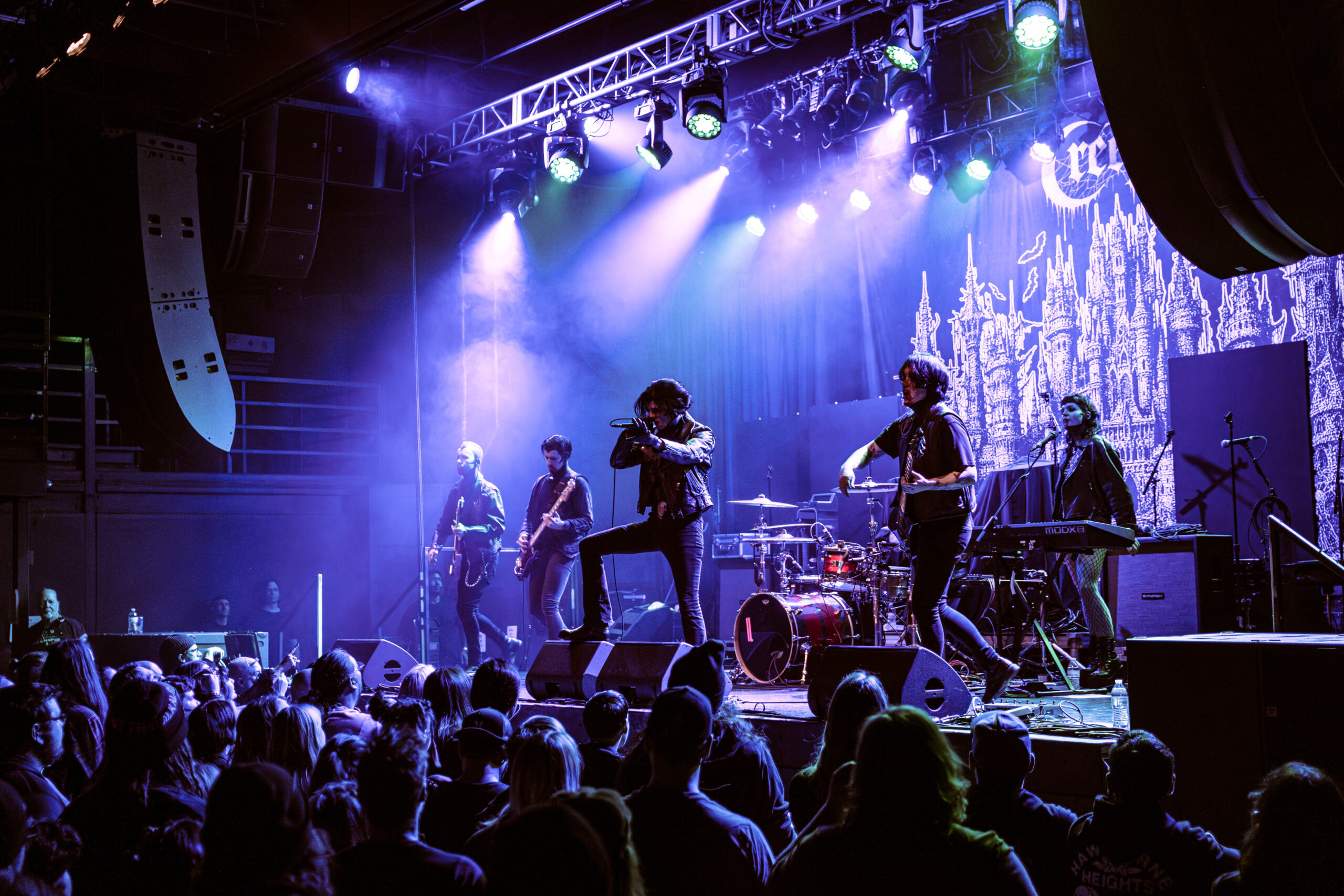 The evening began with a pair of openers who set the tone in very different ways. Creeper opened the night with a theatrical presence that blended gothic imagery and soaring melodies. Their set carried an almost cinematic quality, leaning into dramatic crescendos and charismatic stage energy that quickly won over early arrivals. Later, letlive. delivered a stark contrast—an explosive, high-intensity performance that injected raw urgency into the room. Frontman Jason Aalon Butler commanded the stage with relentless motion, pushing the energy level higher and leaving the crowd primed for the night’s headliner. At the beginning, Butler started running around the stage with a rubbish bin over himself, and at the end, he glided from the stage and brought himself to the very back of the venue, up the stairs and screaming over the terrace to onlooking fans from below.