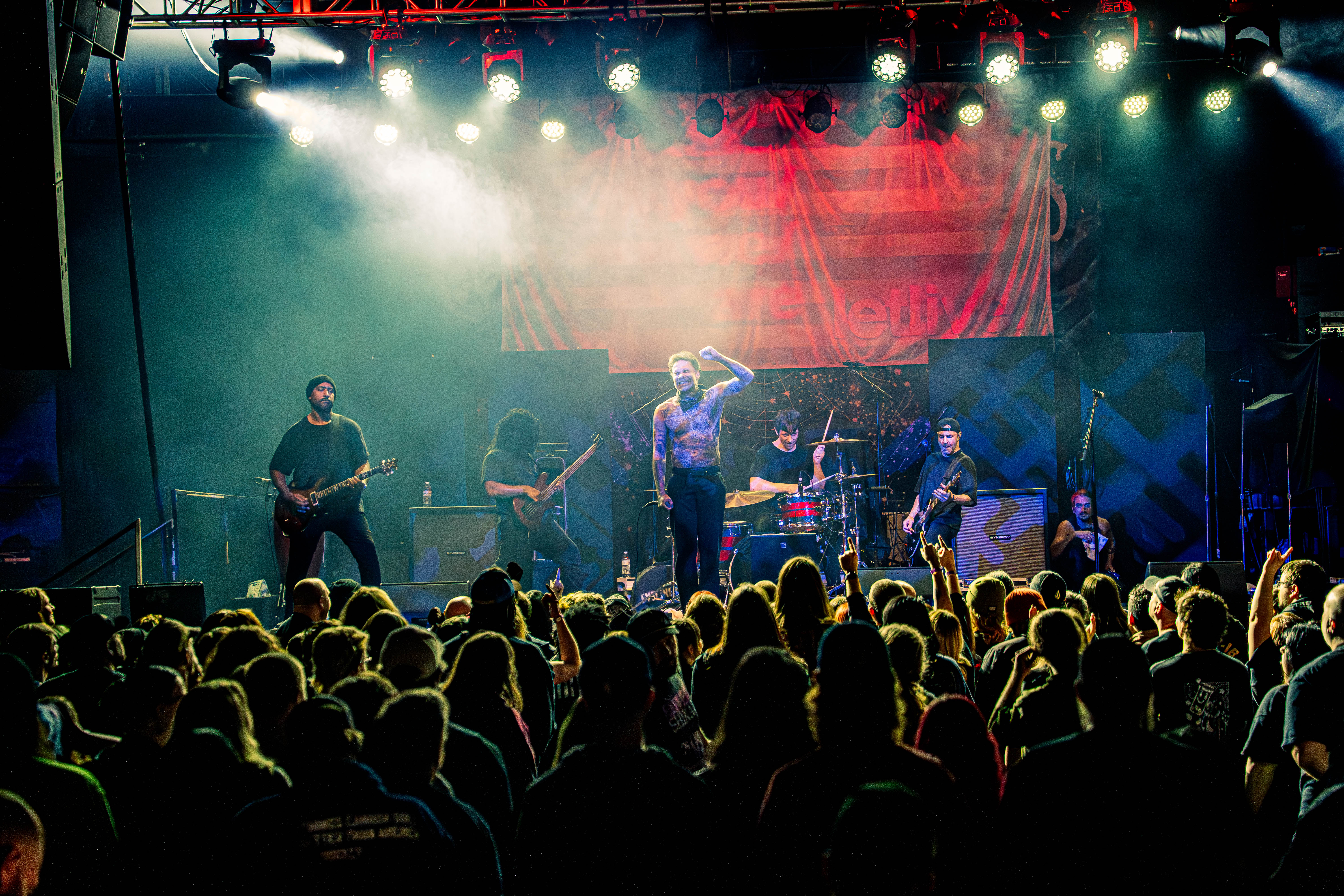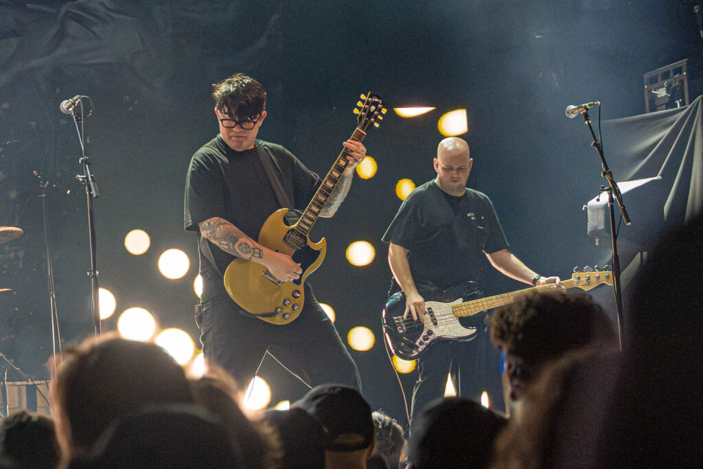 When Hawthorne Heights finally took the stage, the response was immediate. Frontman JT Woodruff guided the performance with an earnestness that has long defined the band’s appeal. His delivery retained the emotional intensity that first propelled the group to prominence in the early 2000s, and the audience met him lyric for lyric. The setlist balanced longtime favorites with newer material, allowing nostalgia and forward momentum to coexist naturally. Throughout the performance, the crowd’s collective voice often rivaled the band’s own, turning the venue into a unified chorus.