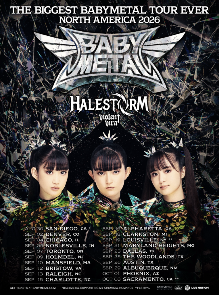 On March 31, 2026, the world known J-metal group BABYMETAL announced the North America and Latin America World Tour 2926 they will be touring with Halestorm and Violent Vira. North America tour presale tickets opened on April 6th and with general tickets on April 10th. Latin America tour presale tickets open on April 20th, and general tickets open on April 22nd.